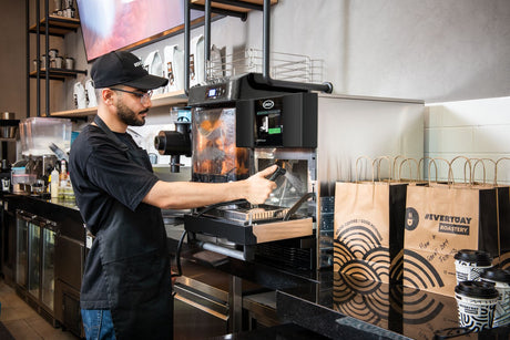 De SPEED.Compact™ ECO is een compacte speedoven van 60 cm diep met een ovenkamer van 30 × 30 cm, ideaal voor keukens waar snelheid en ruimte belangrijk zijn. Door de combinatie van microgolven en hete lucht worden broodjes, snacks en voorgegaarde producten snel en gelijkmatig op temperatuur gebracht, zonder in te leveren op kwaliteit. De bediening is eenvoudig en logisch opgebouwd, zodat medewerkers er direct mee kunnen werken. Ook het dagelijkse onderhoud is praktisch geregeld dankzij het ingebouwde stap-voor-stap reinigingsprogramma. Voor wie het zichzelf nog makkelijker wil maken, is de oven uit te breiden met de QUICK.Rinse handdouche.